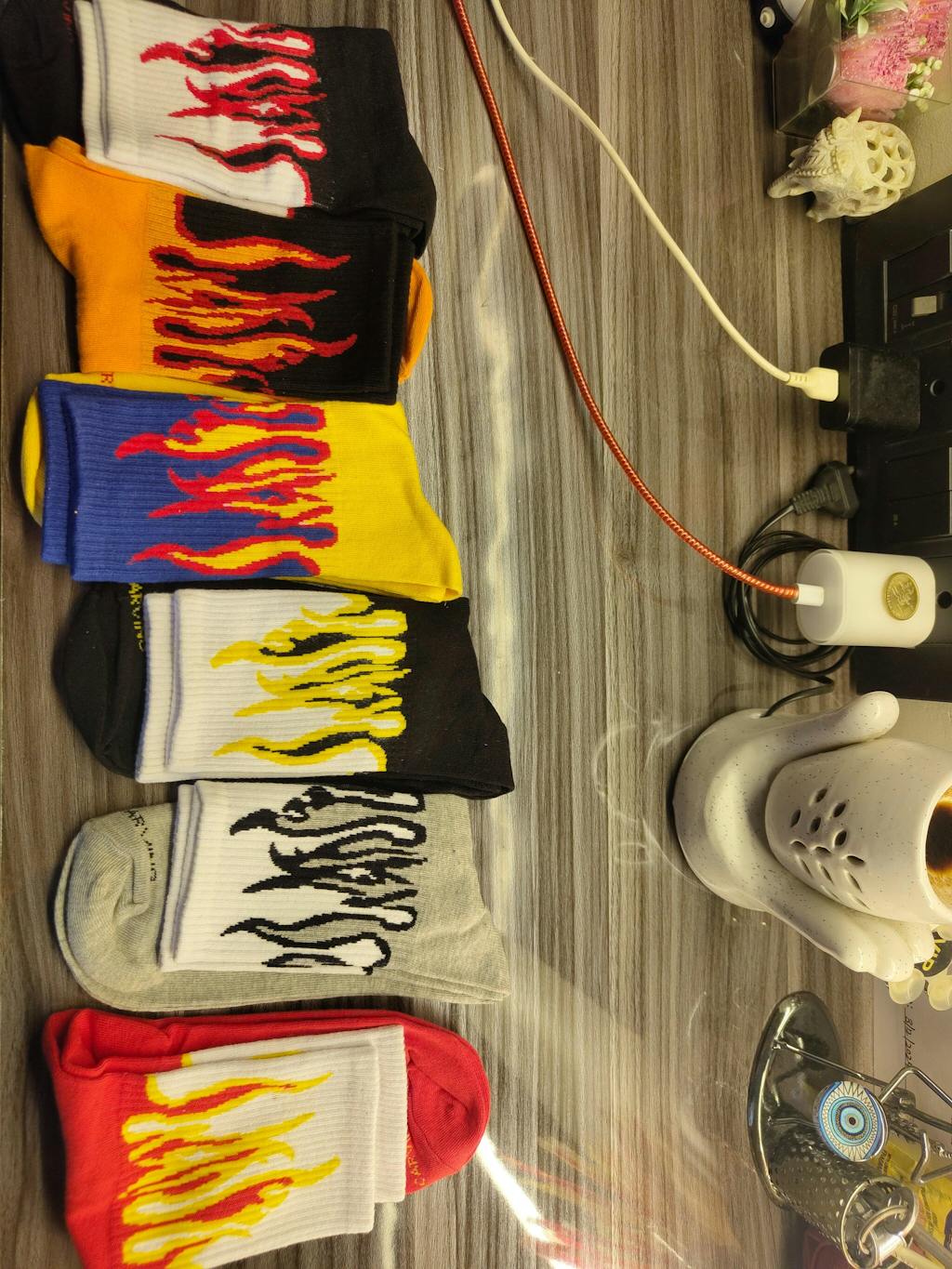 FIRE SOCKS - ORANGE/BLACK - RED FLAMES