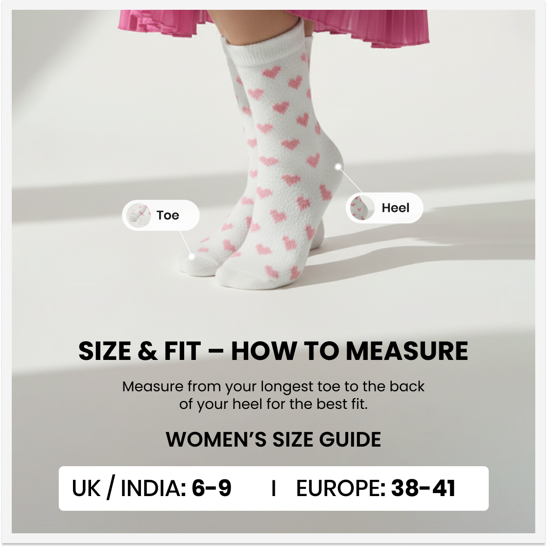 Free Size — Stretchable fit designed to suit most feet comfortably